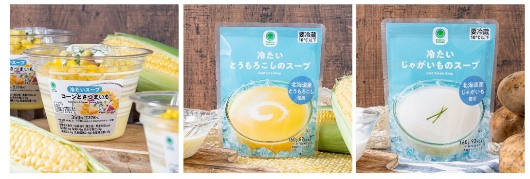 株式会社ファミリーマート(本社:東京都港区、代表取締役社長:細見研介)は、継続して取り組んでいる5つのキーワードの1つである「『あなた』のうれしい」の一環として、プライベートブランド「ファミマルKITCHEN」から、夏に向けた冷製スープ「冷たいスープ コーンとさつまいも」350円(税込378円)、「冷たいとうもろこしのスープ」184円(税込198円)、「冷たいじゃがいものスープ」184円(税込198円)を2023年5月30日(火)から沖縄県を除く全国のファミリーマート約16,200店にて発売いたします。