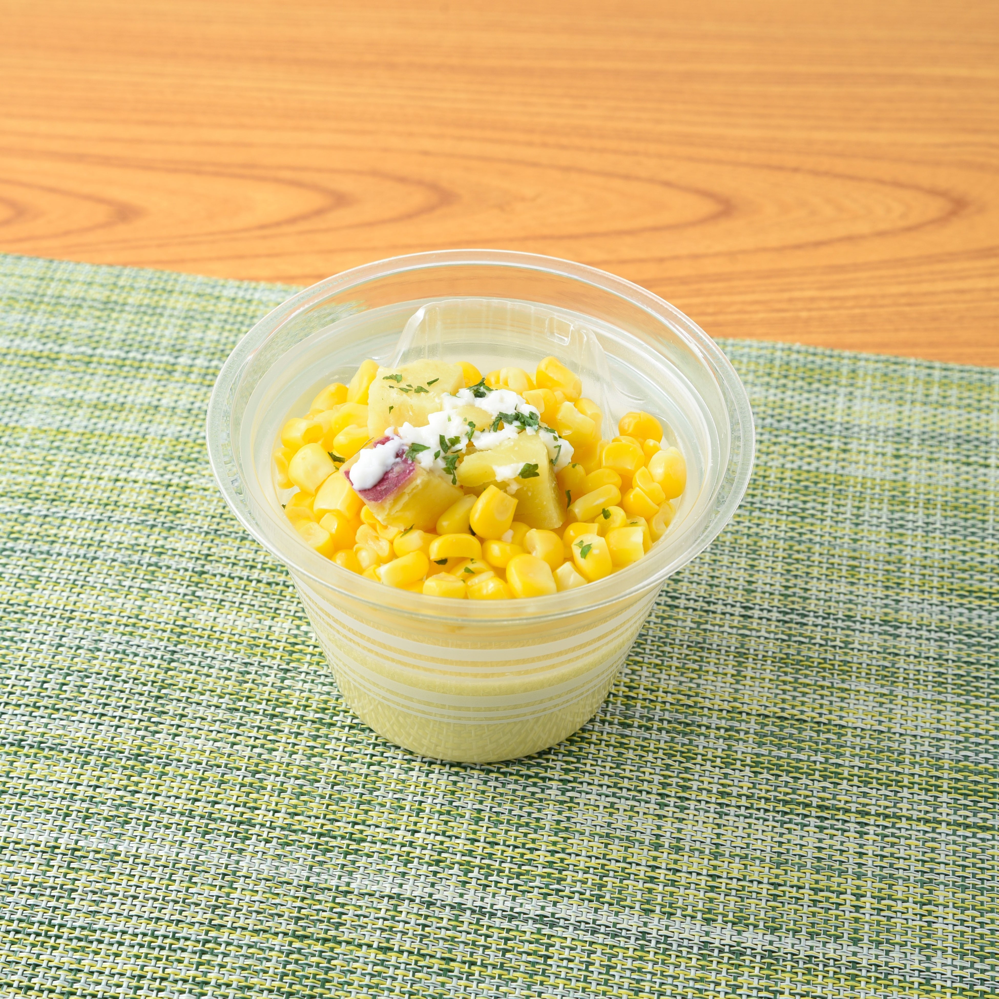 【内容】北海道産とうもろこしと生クリームを使用し、自然なとうもろこしの甘味を感じられる、なめらかでクリーミーな冷たいスープです。