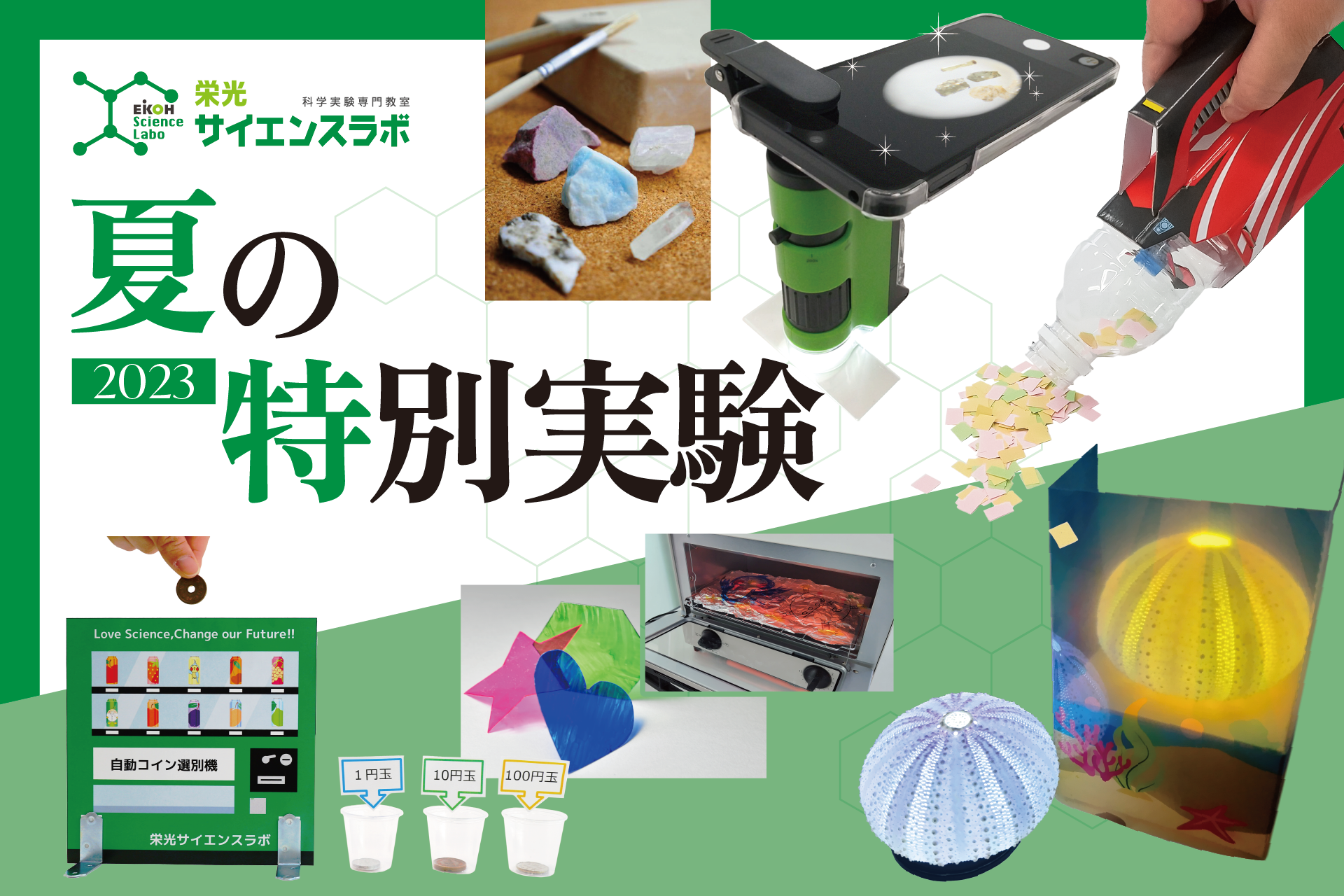 科学実験専門教室「栄光サイエンスラボ」では2023年7月~8月まで、年中~小学6年生を対象に、「夏の特別実験」を開講します。お子さまの好奇心・探究心を刺激する、対面講座・映像講座あわせて全12講座を用意しました。映像講座では事前にキットをお送りし、映像を見ながら自宅で実験します。すべての対面講座でも、使用したキットや作成したものを持ち帰りできるので、夏休みの自由研究にピッタリです。普段、栄光サイエンスラボにお通いでない方も参加可能です。