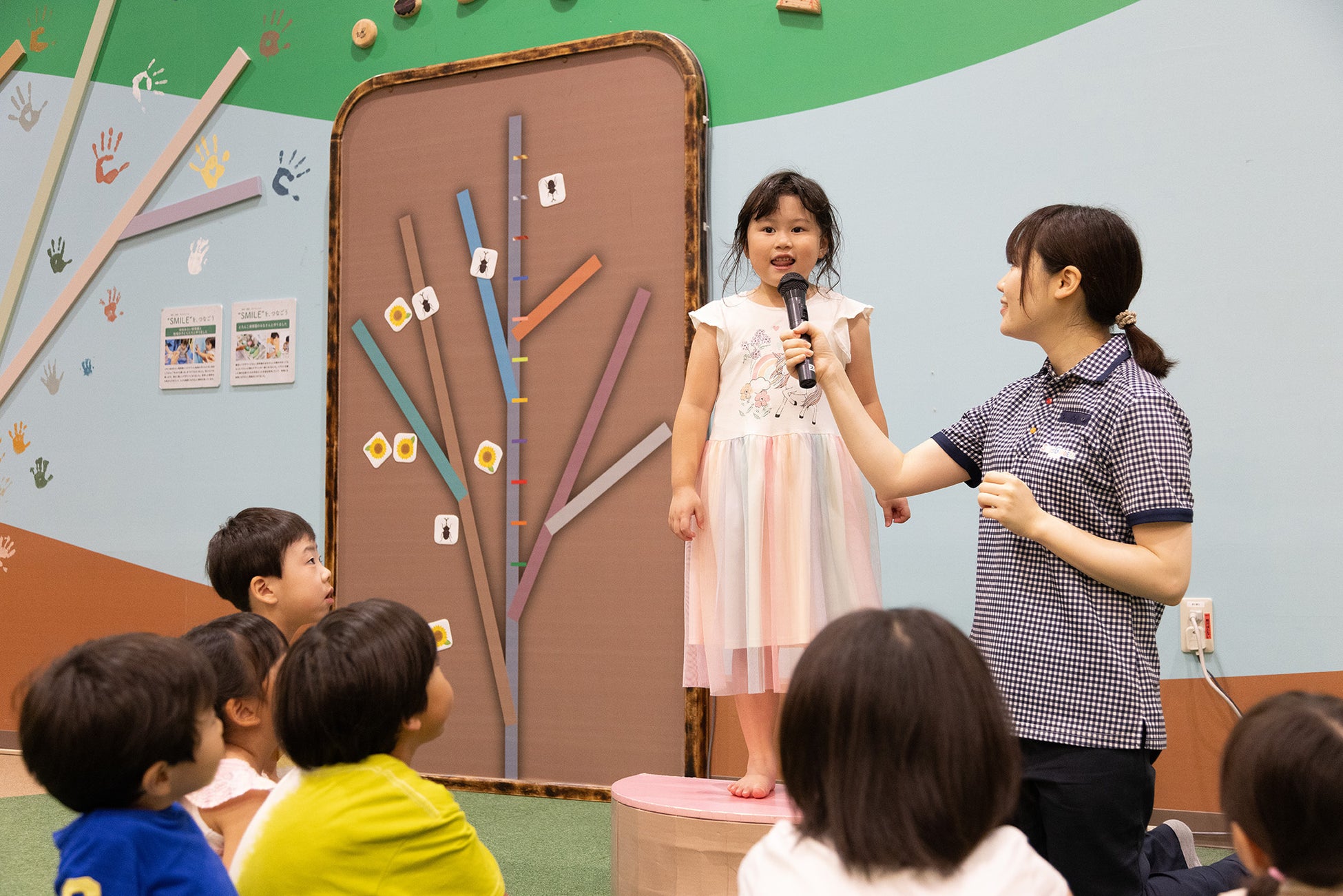 様々なイベントやプログラムの集団あそびを通じて、初めて出会うお友達と関わり、協調性や社会性を育みます。また異年齢同士で関わることで、他の年齢のお子さまとの関わり方や思いやりの気持ちが育まれます。