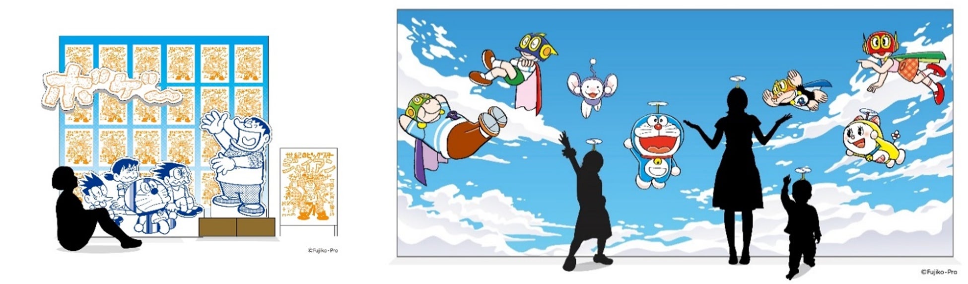 会場には、まるでまんがに入り込んだような写真が撮影できるフォトスポットが登場︕「ドラえもん」と一緒にタケコプターで空を飛んだり、ジャイアンのリサイタルなど、憧れのシーンをお楽しみいただけます。