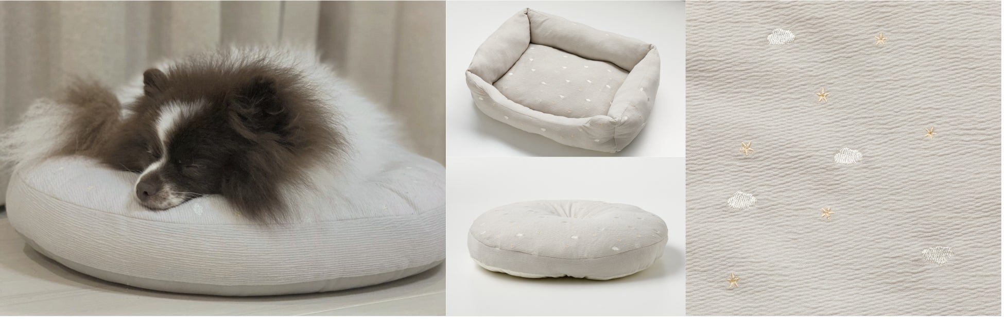 サラサラもちもち。夜空のような刺繍がかわいいペット用寝具『夢見る雲ベッド』シリーズが新発売。