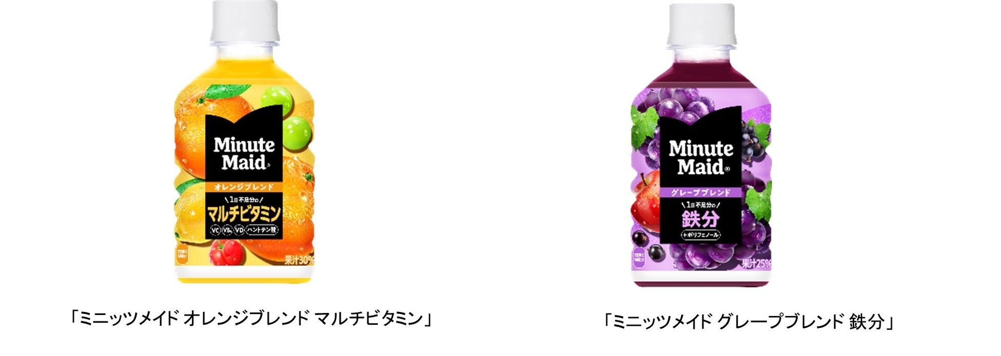 「ミニッツメイド オレンジブレンド マルチビタミン」、「ミニッツメイド グレープブレンド 鉄分」(280ml PET)
