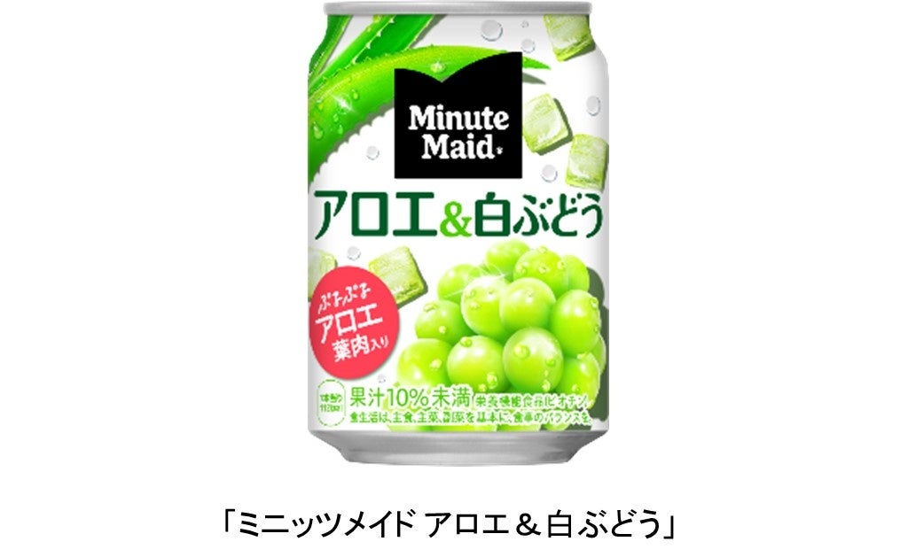 「ミニッツメイド」シリーズで、自動販売機において一番人気※3の「ミニッツメイド アロエ&白ぶどう」も