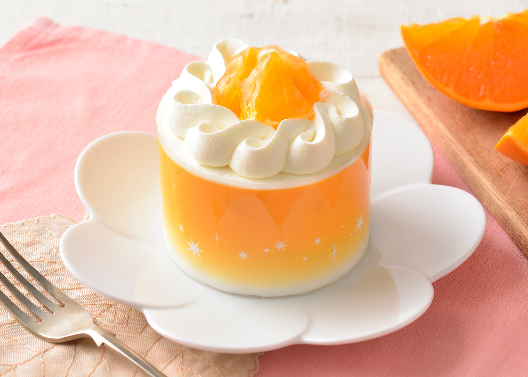 とろけるような食感と、ジューシーで濃厚な甘みが特長の柑きつ「せとか」を飾り、せとか&オレンジのゼリーと、ヨーグルト風味クリームを、ふわふわのスポンジでサンドしました。