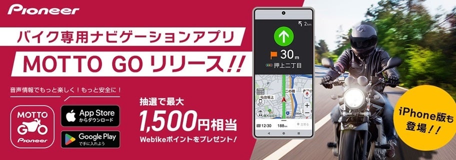 パイオニアは、高度なルートテクノロジーと音声技術を活用し、安心・安全で快適なツーリングをサポートするバイク専用ナビゲーションアプリ「MOTTO GO(モットゴー)」公式版(iPhoneおよびAndroidデバイス向け)の提供を、7月4日に開始しました。