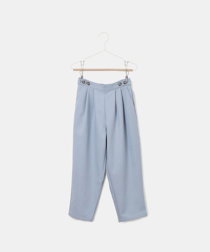 ウエストはゴム仕様、またサイドボタンで調整もできるので、大きめサイズを買っても安心です。