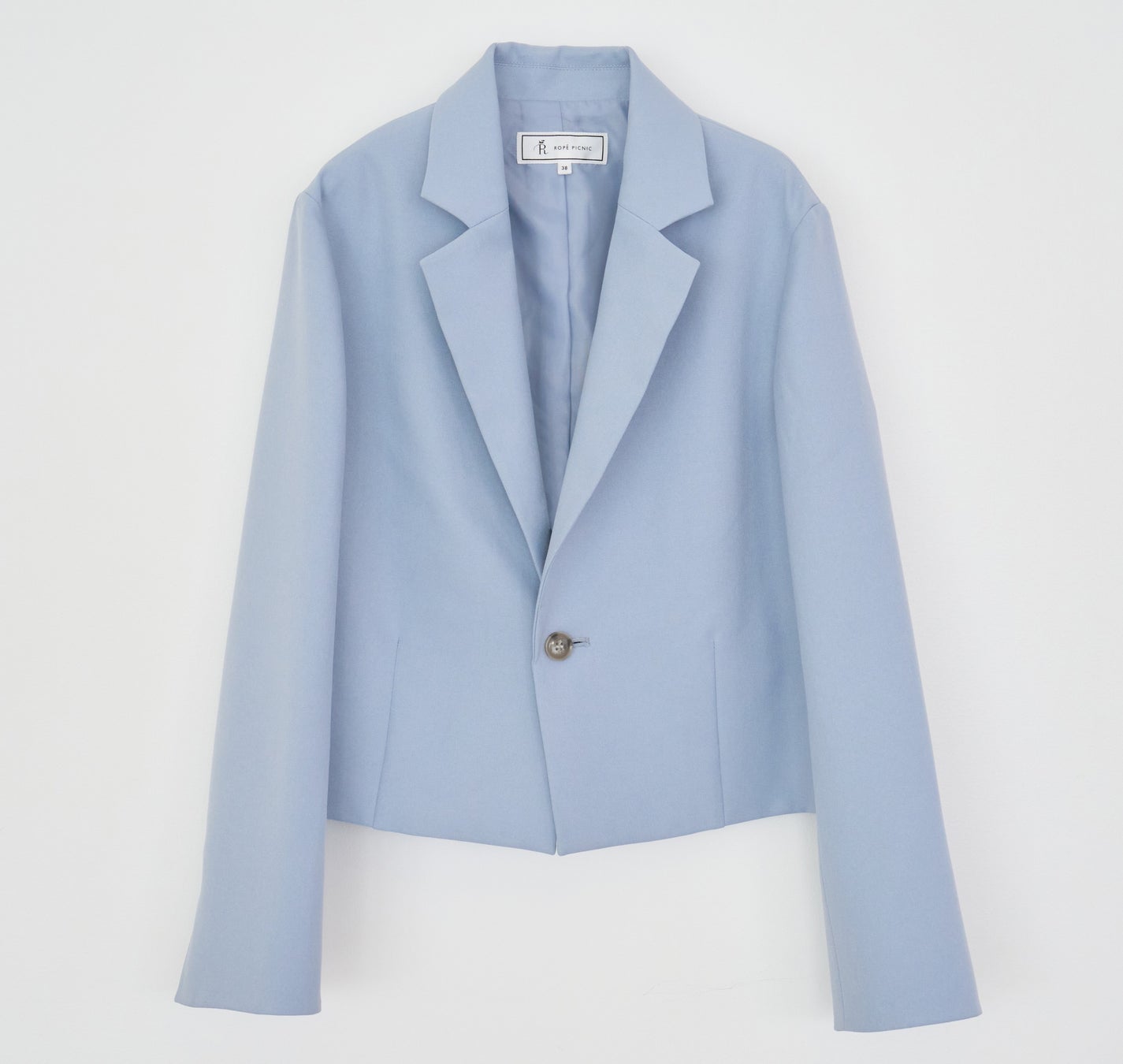ゆったりシルエットをバランス良く見せる、クロップド丈がポイントのテーラードジャケット。