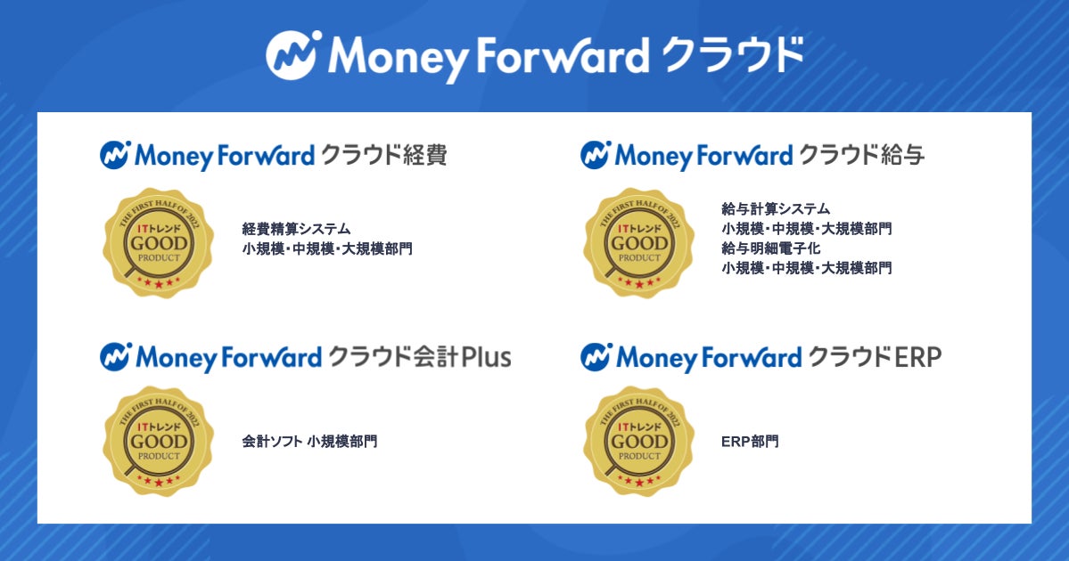 『マネーフォワード クラウド経費』『マネーフォワード クラウド給与』『マネーフォワード クラウド会計Plus』『マネーフォワード クラウドERP』が「ITトレンド Good Product」に認定