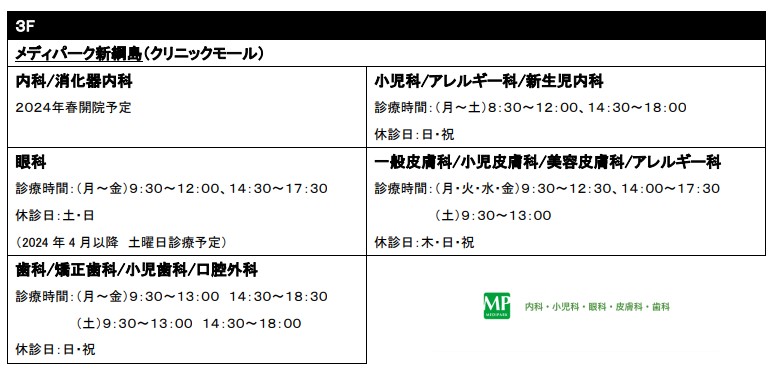 2階調剤薬局・3階「メディパーク新綱島」:2024年1月より順次オープン