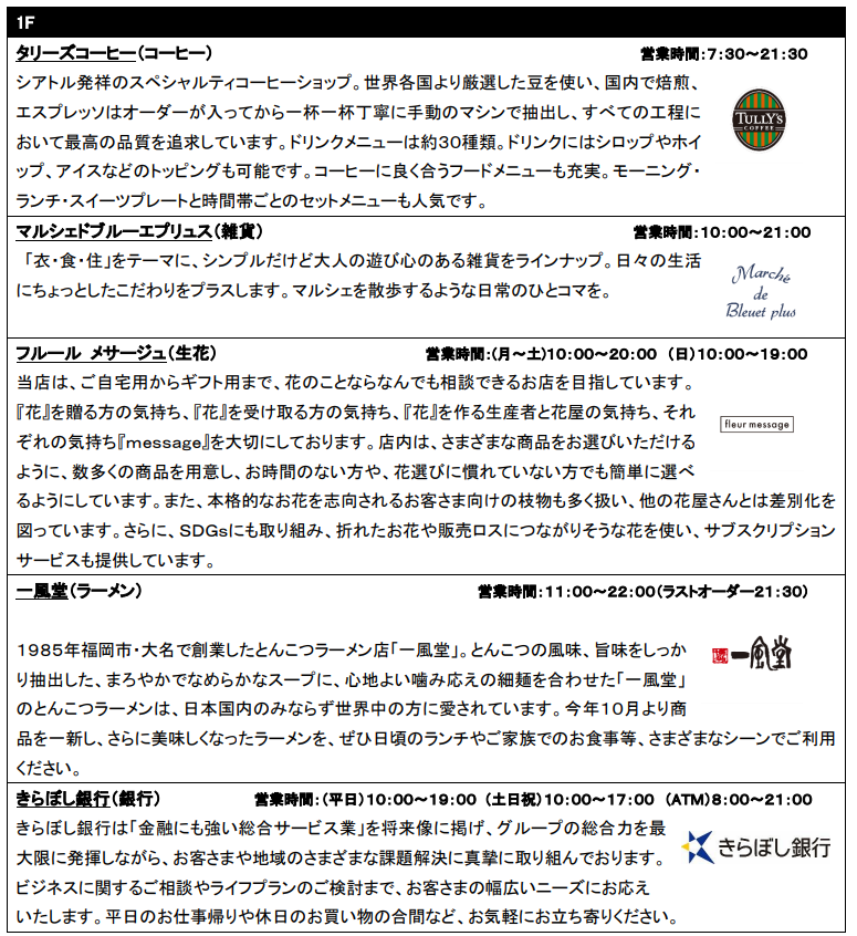 本施設概要、店舗詳細、開業記念企画詳細については別紙の通りです。
