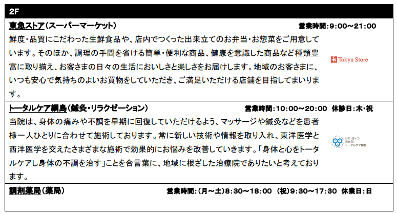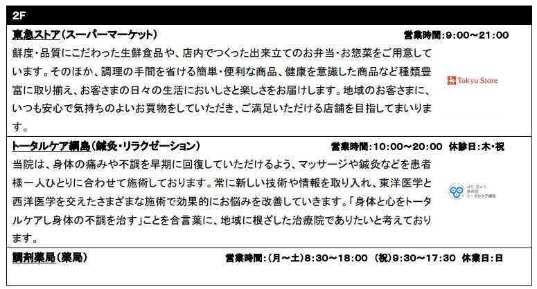 <新綱島スクエア 商業施設部分について>