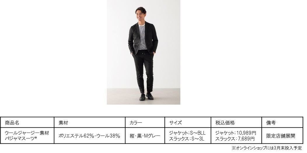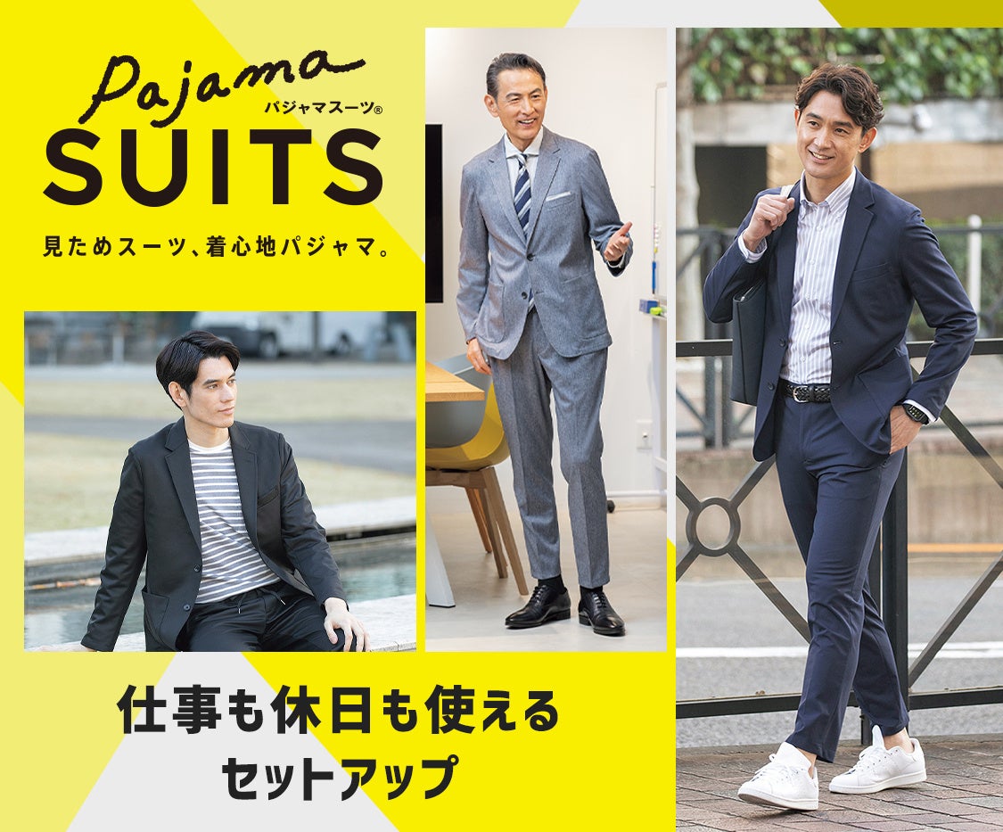 2020年にコロナ禍で発売したパジャマスーツ®は2024年2月末に累計販売着数47万着を突破するほどご好評いただいております。2024年春のパジャマスーツ®ラインナップは、変化するビジネススタイルに対応したアイテムを中心に、一部商品では再生繊維を使用したアイテムも展開いたします。