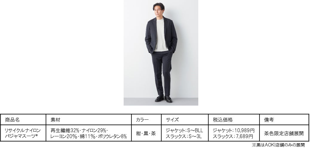 株式会社AOKI(代表取締役社長:森裕隆)は、2020年にパジャマスーツ®を発売し、累計販売着数47万着を突破するほどご好評いただいております。2024年春のラインナップでは、変化するビジネススタイルに合わせシーンレスに着こなせるアイテムを展開する他、一部商品では再生繊維を使用した商品も展開いたします。加えて、「パジャマスーツ®カタログ」を作製し、新たな着こなし提案を実施することで、パジャマスーツ®のさらなる認知拡大に努めてまいります。今回発売するアイテムは、全国のAOKI店舗(一部限定店舗)および公式オンラインショップにてご購入いただけます。( https://www.aoki-style.com/feature/pajamasuit/ )