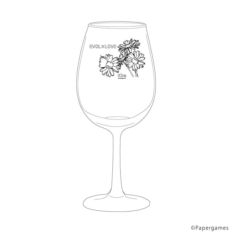 さらにワンポイントにお花やカレの名前がデザインされた、ワイングラスもラインナップ! ワインはもちろん、お好きな飲み物を注いで、カレ達と優雅なひと時をお過ごしください。