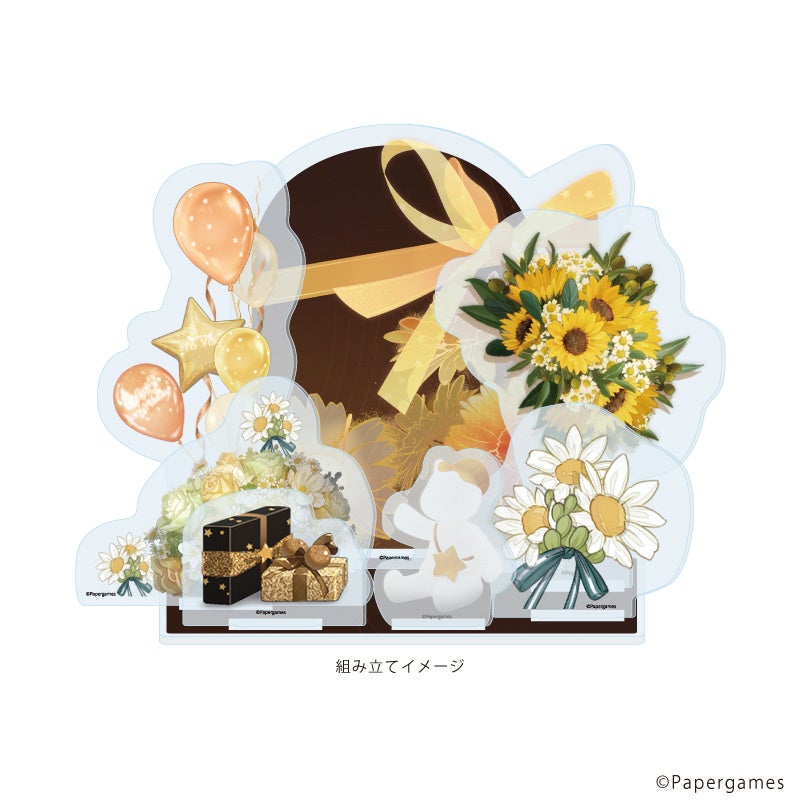 お誕生日や周年イベントにぴったりなプレミアム アクリルジオラマプレートも必見。花束やバルーンで彩られた華やかなデザインなので、このアイテムがあれば手軽にお手持ちのグッズをより豪華に飾れます!