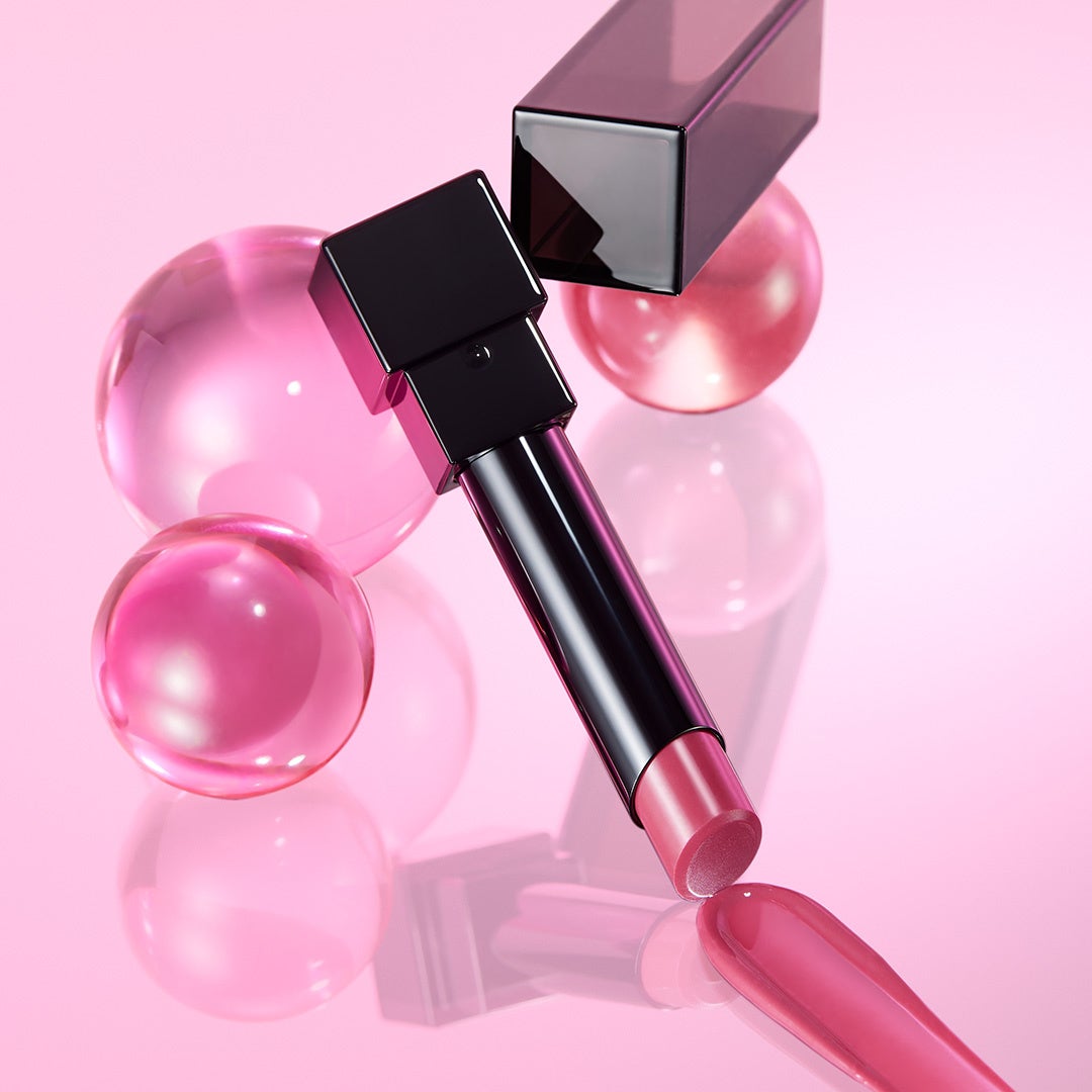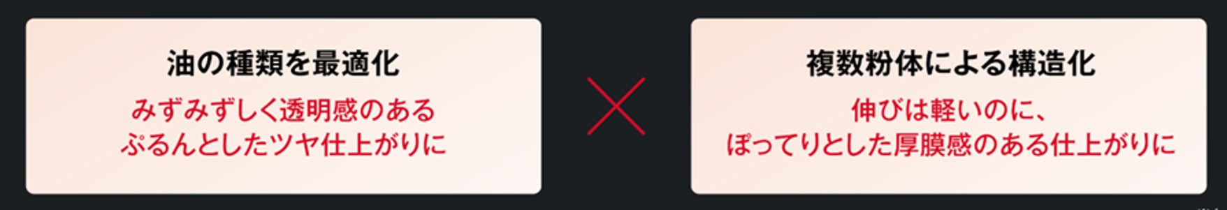②油と粉体を組み合わせた独自リキッド処方を採用。ぷるんとしたみずみずしいツヤ感のある仕上がりを叶えます。