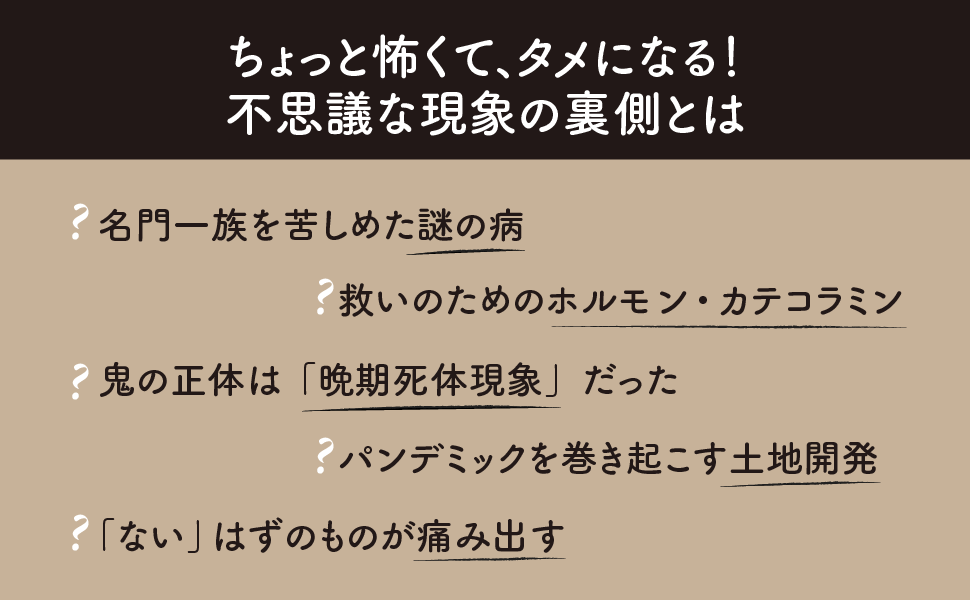 本書では、身近な呪いや怪奇現象の魅力を紹介しつつ、科学でそれらの謎を解き明かしていきます。