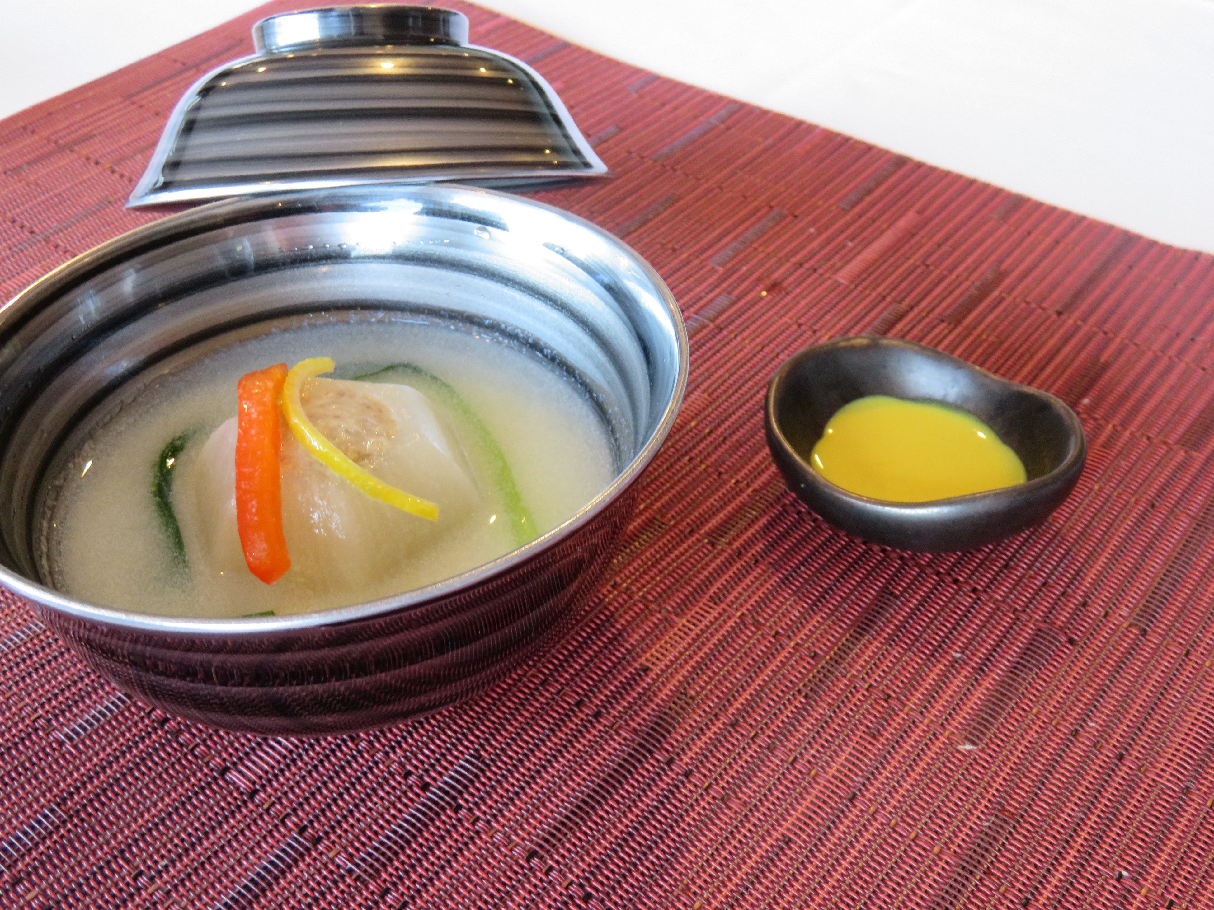 最優秀作品:山翠楼料理長自慢の出汁を使って仕上げた和牛の射込みカブ豆乳澄まし仕立て