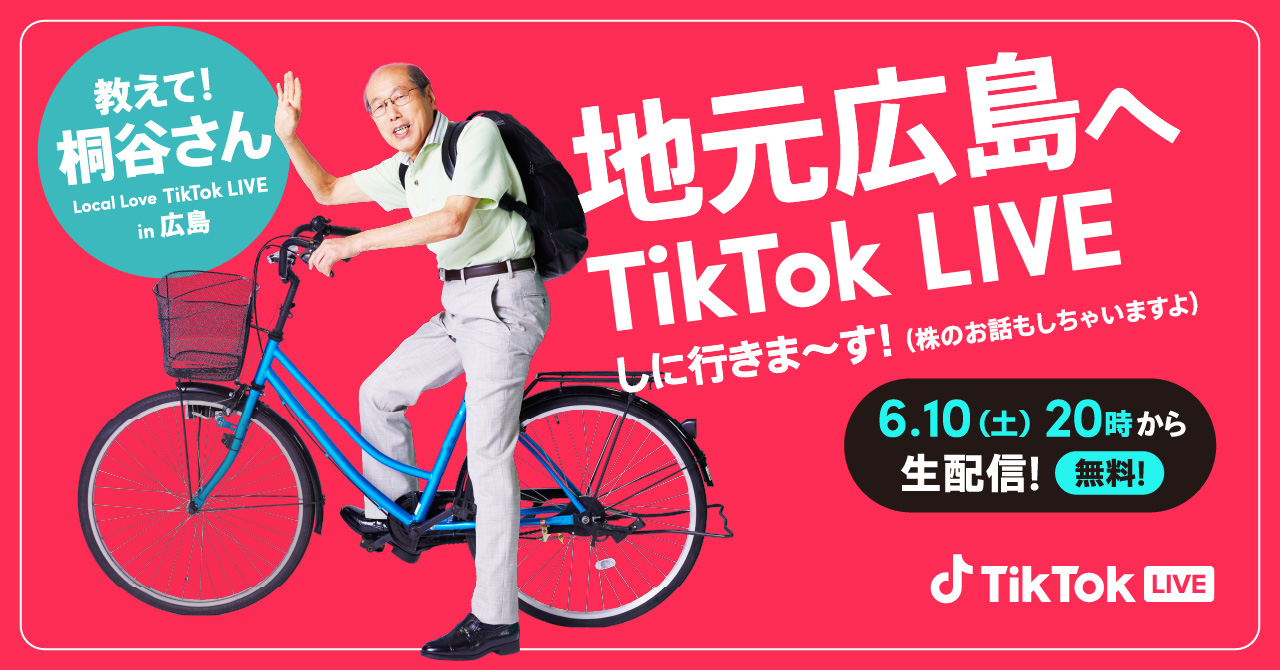 TikTok、広島県出身で株主優待投資家の「桐谷さん」が出演する「Local Love TikTok LIVE」in 広島を6/10に開催!広島本通商店街内の商業店舗より配信