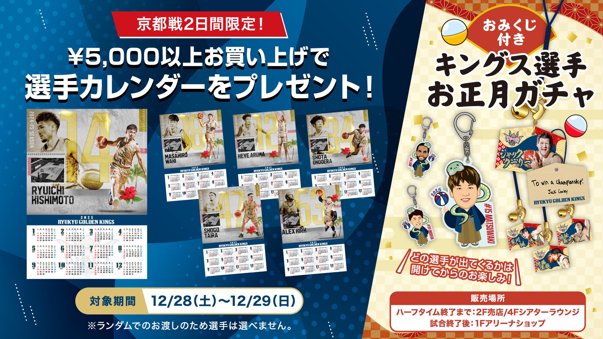 今週末12月28日(土),29日(日)にアリーナショップ限定で¥5,000以上のお買い上げごとにおひとつ「2025年選手カレンダー」をプレゼントいたします。カレンダーデザインの選手はランダムとなっておりますので誰が出るかはお楽しみ!