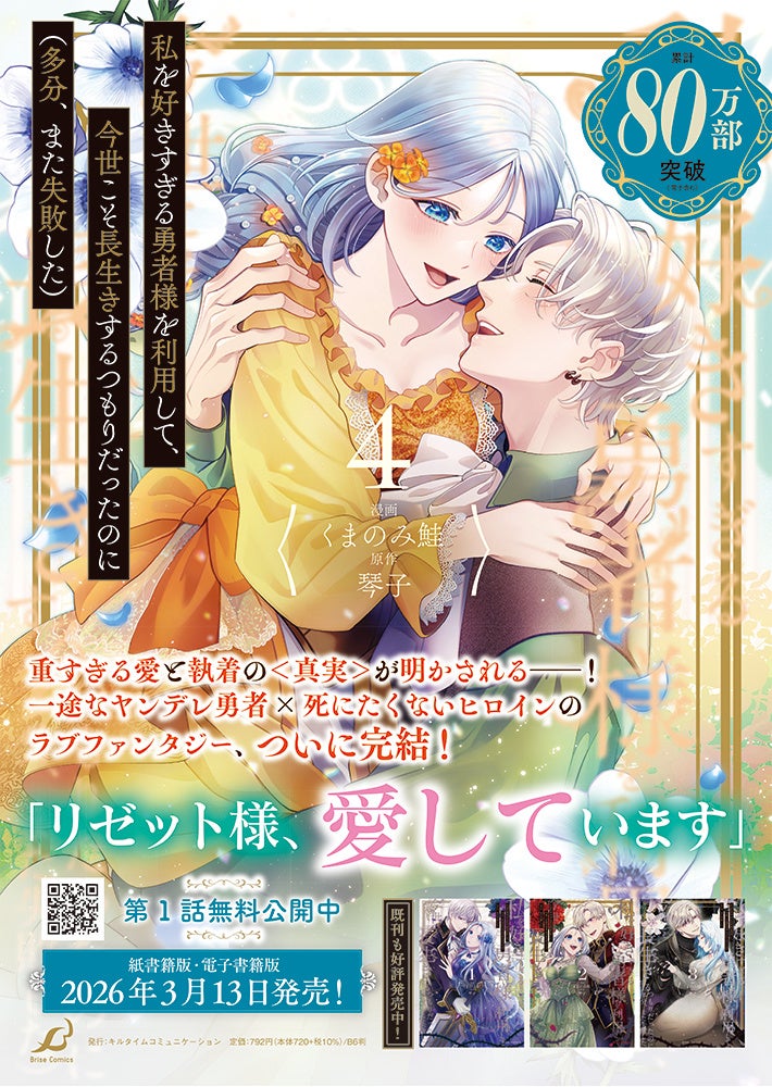 キルタイムコミュニケーションは、ブリーゼコミックス『私を好きすぎる勇者様を利用して、今世こそ長生きするつもりだったのに(多分、また失敗した)4』『私を好きすぎる勇者様を利用して、今世こそ長生きするつもりだったのに(多分、また失敗した)4 アクリルスタンド2種+SSリーフレット付き限定版』を3月13日に発売いたします。