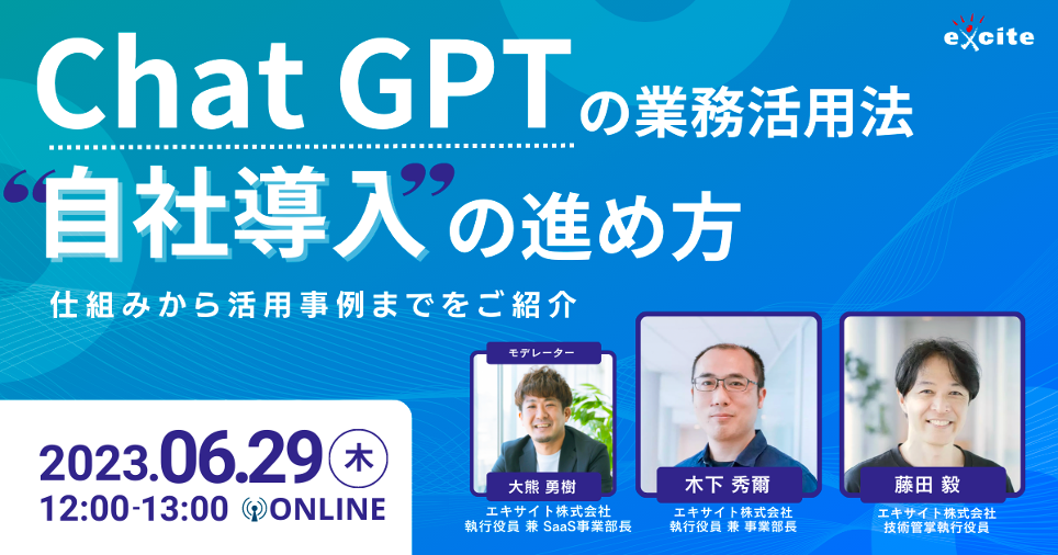 タイトル | Chat GPTの業務活用法 “自社導入” の進め方 〜仕組みから活用事例までをご紹介〜 |