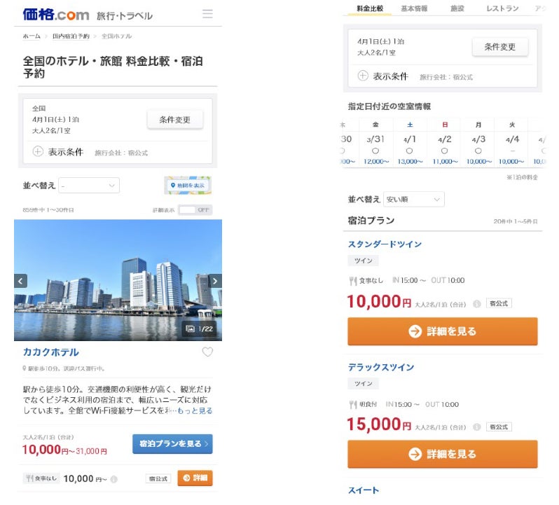 宿泊プランの一括検索・比較サービス「価格.com 旅行・トラベル」、