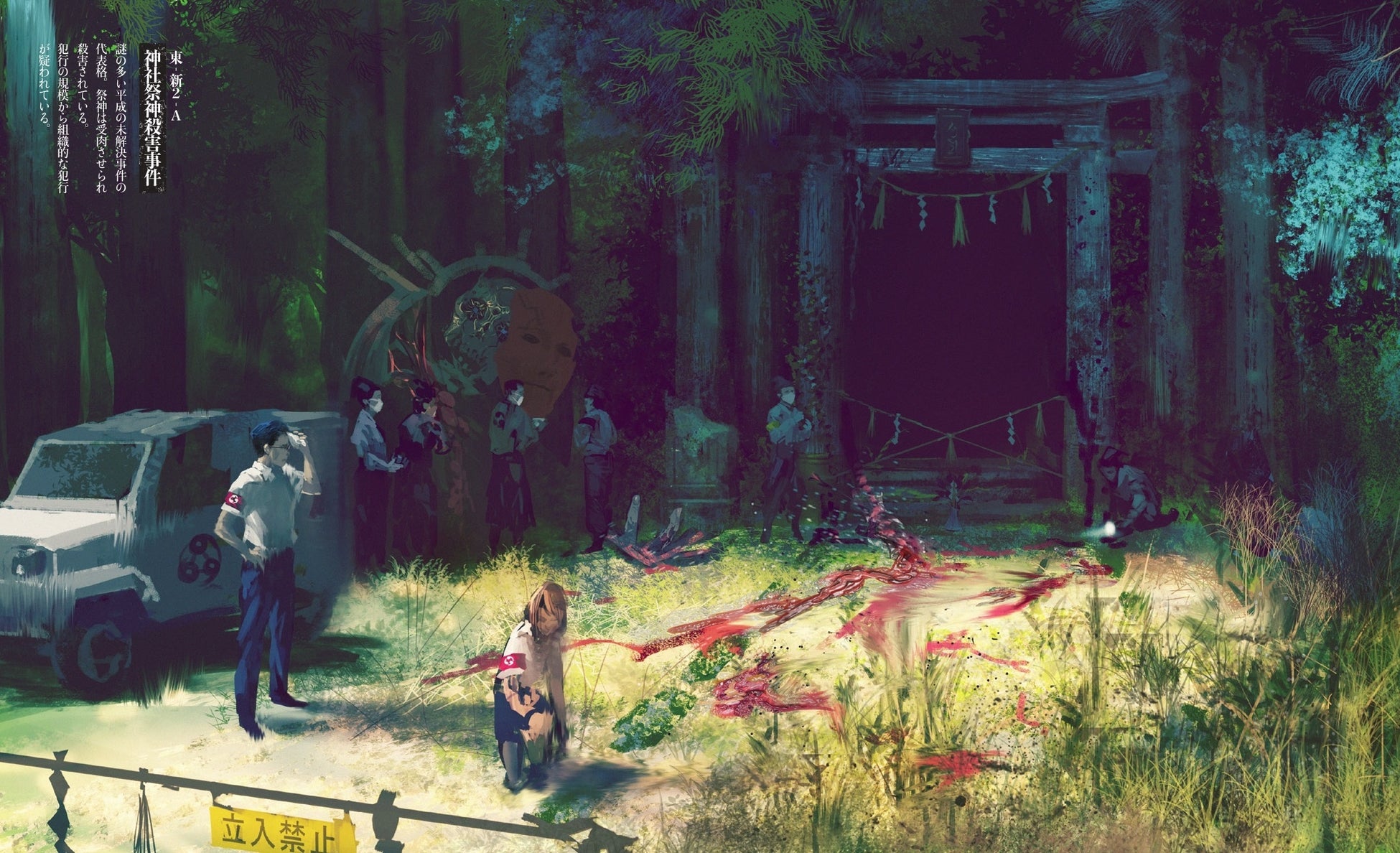 - 黒服警官や民間陰陽師、怪異など、多彩なキャラクターたちの人物画も充実