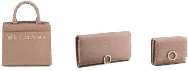 右)「ブルガリ・ブルガリ」ミニウォレット/ カーフ / トープクォーツ(日本限定カラー)W9.5XH7.5XD3cm 60,500円(税込)