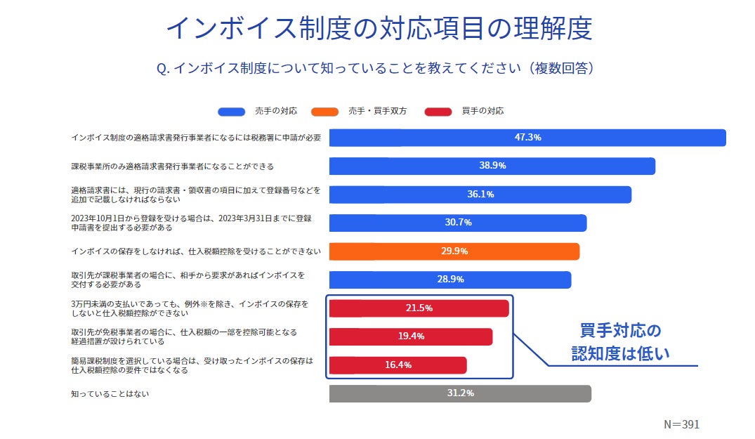 インボイス制度について「深く理解している・理解している」と回答した経理・財務担当はわずか32.3%という結果が出ました。