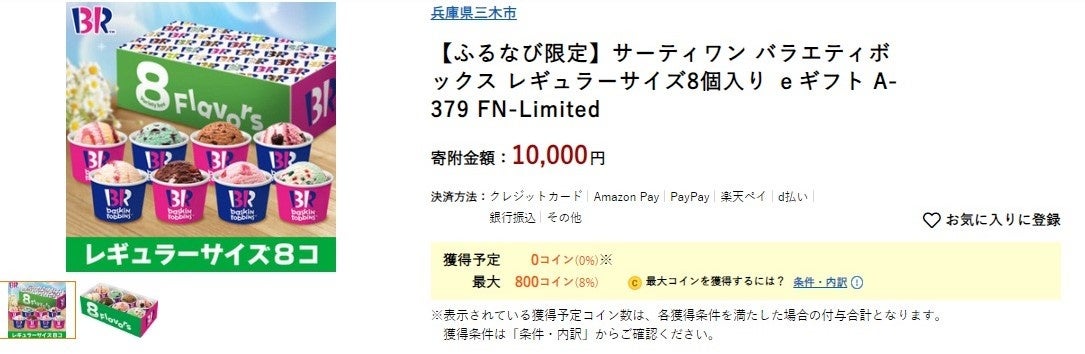 【ふるなび限定】兵庫県三木市の返礼品としてサーティワン アイスクリームeギフト券の人気商品を掲載開始!