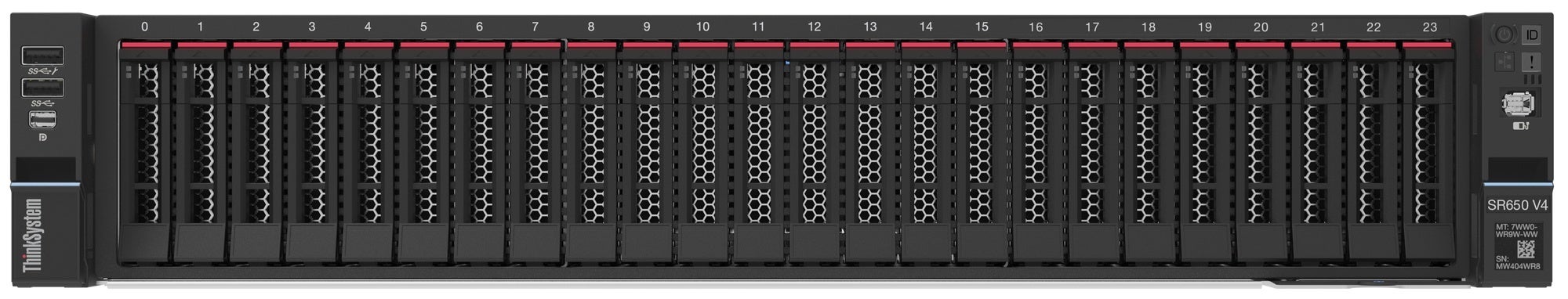 「ThinkSystem SR650 V4」は、パフォーマンスと柔軟性の最大化を必要とするお客様にとって理想的なサーバーです。2基のインテルXeon 6700シリーズまたはXeon 6500シリーズプロセッサをベースにしており、データベース、仮想化とクラウドコンピューティング、仮想デスクトップインフラストラクチャ(VDI)、インフラストラクチャセキュリティ、システム管理、エンタープライズアプリケーション、コラボレーション/電子メール、ストリーミングメディア、Web、HPCなど、幅広いワークロードを処理できるように設計されています。