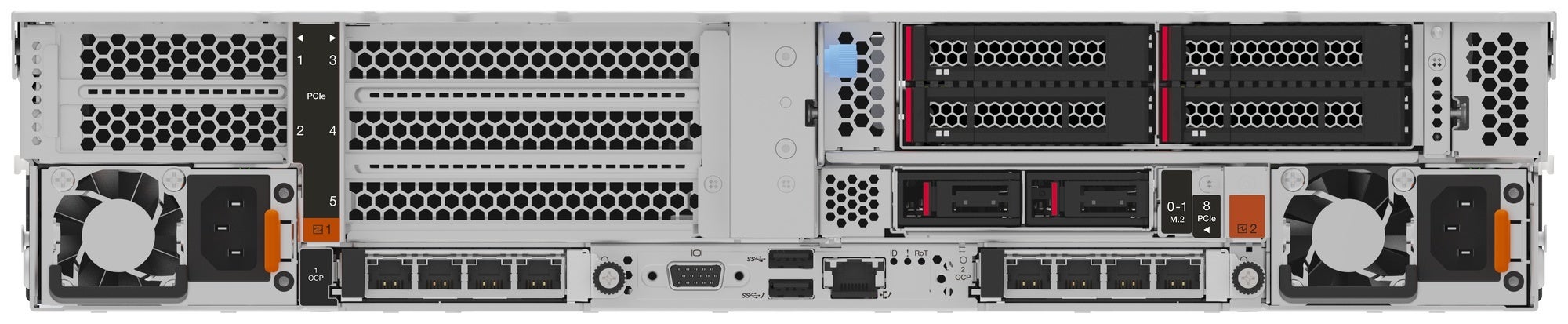 仮想化、データベース、ハイブリッド・クラウド、分析など、さまざまな用途で利用できる2Uラック型サーバーです。高い性能を備えているほか、最大32個のTruDDR5 RDIMM、最大36個のNVMeドライブ、最大10個のPCI Express 5.0スロットに対応し、拡張性にも優れています。