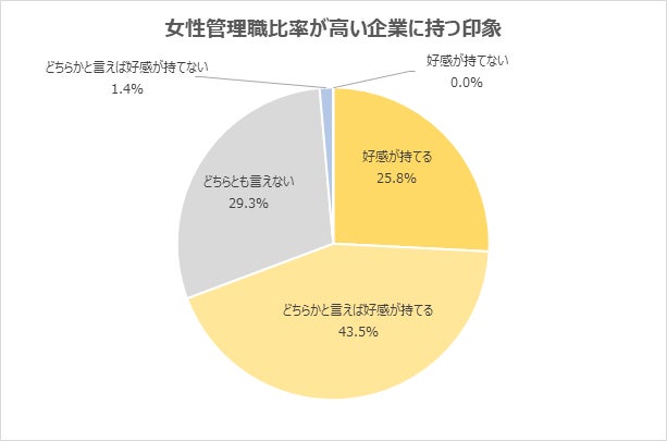 約7割の20代が、女性管理職比率が高い企業は好感が持てると回答。「ダイバシティを重視している企業だと感じる」「社会課題に取り組む姿勢を感じる」の声/20代アンケート
