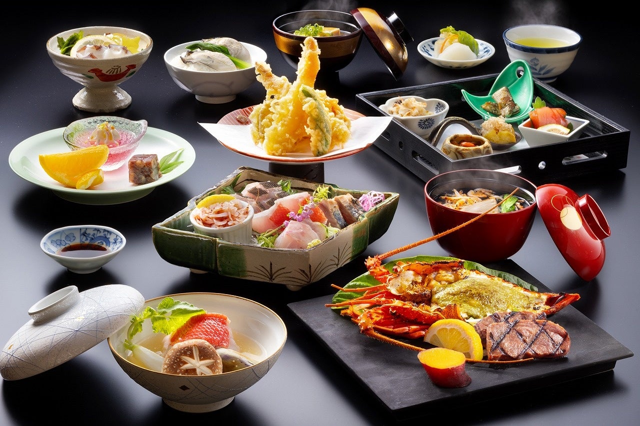 日本一の漁獲量を誇る金目鯛、伊勢海老、明日葉など、伊豆の山海の幸は、お造りや焼物、煮物など、季節の旬を味わえる和会席でお召し上がりください。