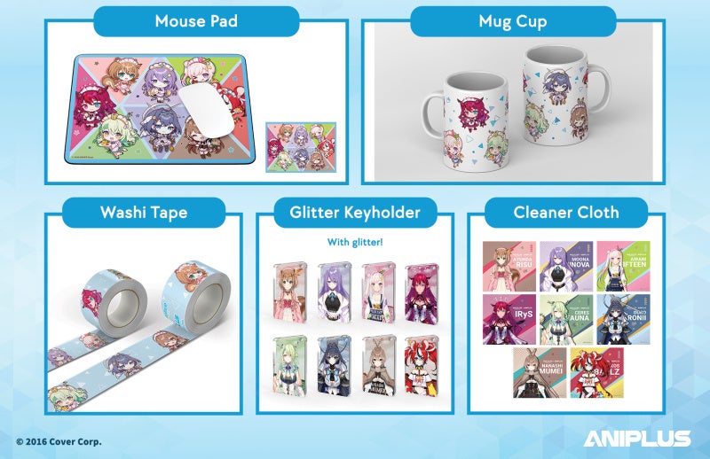 コラボを記念して、「hololive production x ANIPLUS collab café」限定グッズが発売されます。発売日につきましては、公式Twitter (https://twitter.com/anipluscafesg)をご確認ください。