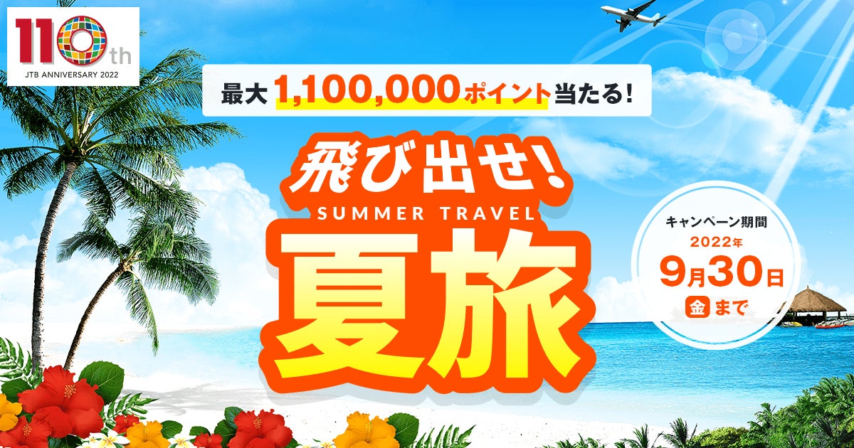 JTB創立110周年記念!最大110万円分のポイントが当たる!「飛び出せ!夏旅」キャンペーン開催!