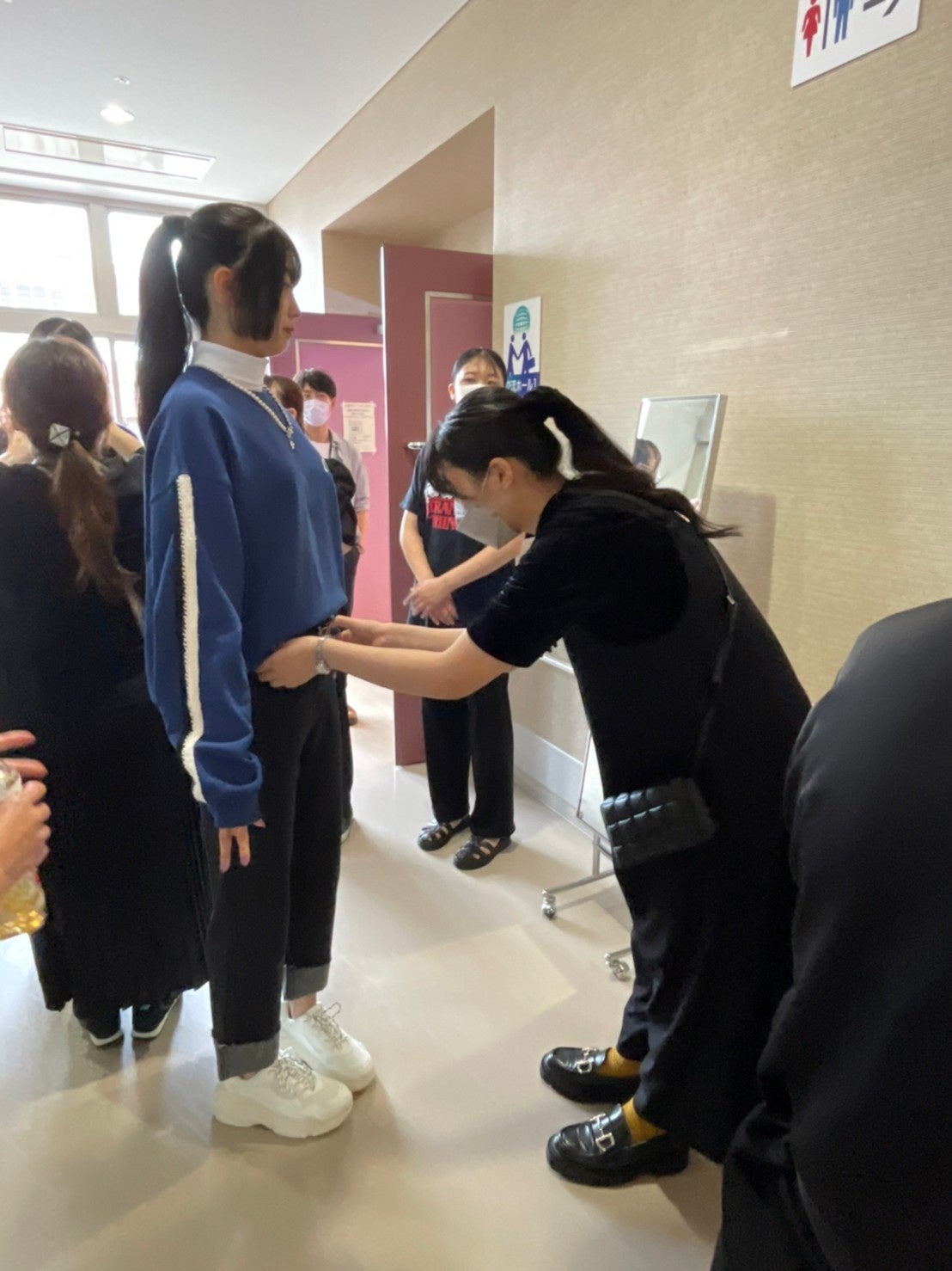 モデルとして国際音楽・ダンス・エンタテイメント専門学校の学生が参加し、その学生が着るY2Kファッションのフィッティング担当として衣装管理や着付けを本学学生が行っております。