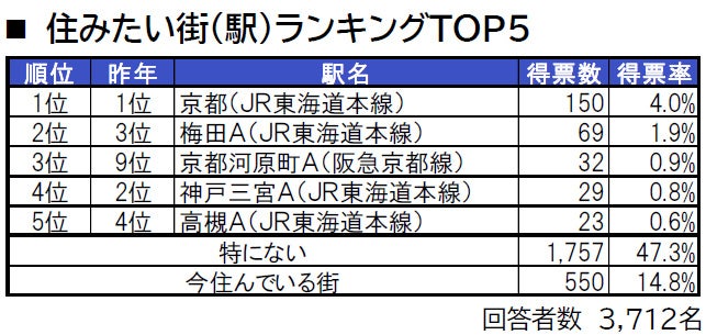 ■住みたい街(駅)トップは、4年連続で京都(JR東海道本線)