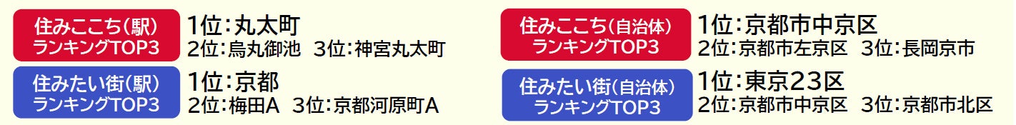 •「住みたい街(駅)ランキング」は、京都府居住者の2023年の回答を関西内の駅を対象にしてランキングを集計しています。「住みたい街(自治体)ランキング」は、京都府居住者の2023年回答を全国の自治体を対象にしてランキングを集計しています。