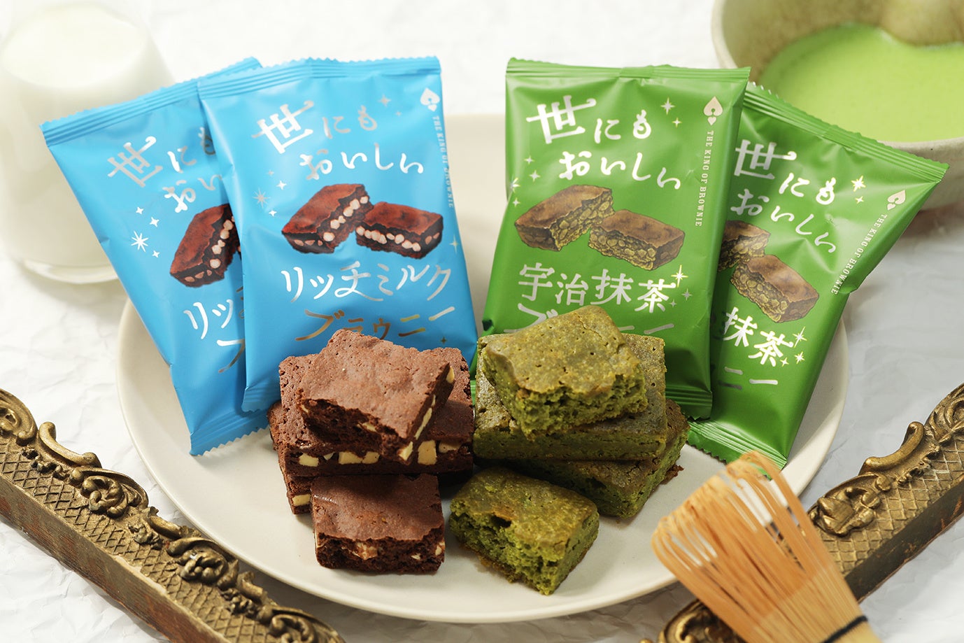 そしてこのたび、季節限定フレーバーとして『世にもおいしいリッチミルクブラウニー』『世にもおいしい宇治抹茶ブラウニー』を新発売いたします。