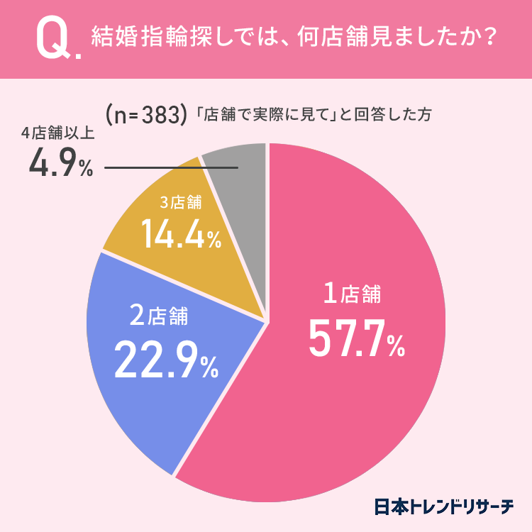 【結婚指輪どう探す?】店舗で実際に見て探す方のうち57.7%が「1店舗のみで決めた」