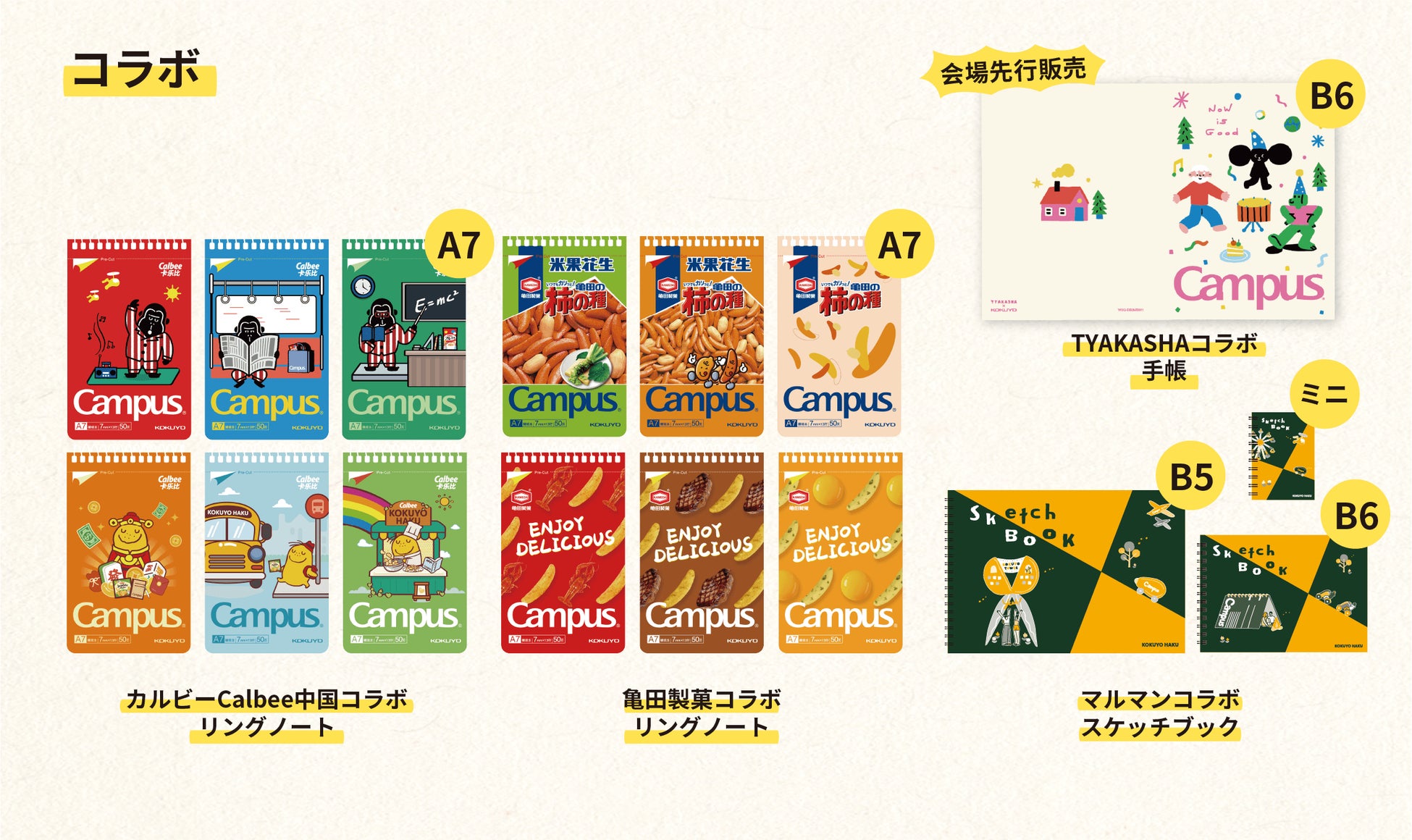 今年は、製菓メーカーのカルビーCalbee中国、亀田製菓やマルマンとのコラボ商品を展開します。