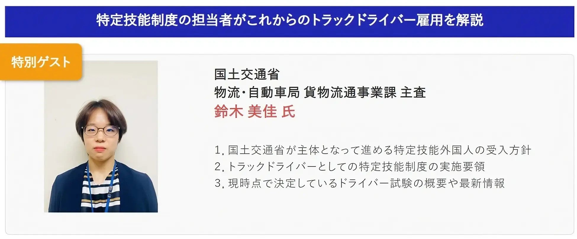 【特別に追加開催決定】特定技能制度の担当者がこれからのトラックドライバー雇用を解説した「外国人ドライバー採用先取りセミナー」を2024年12月5日(木)開催|船井総研ロジ株式会社