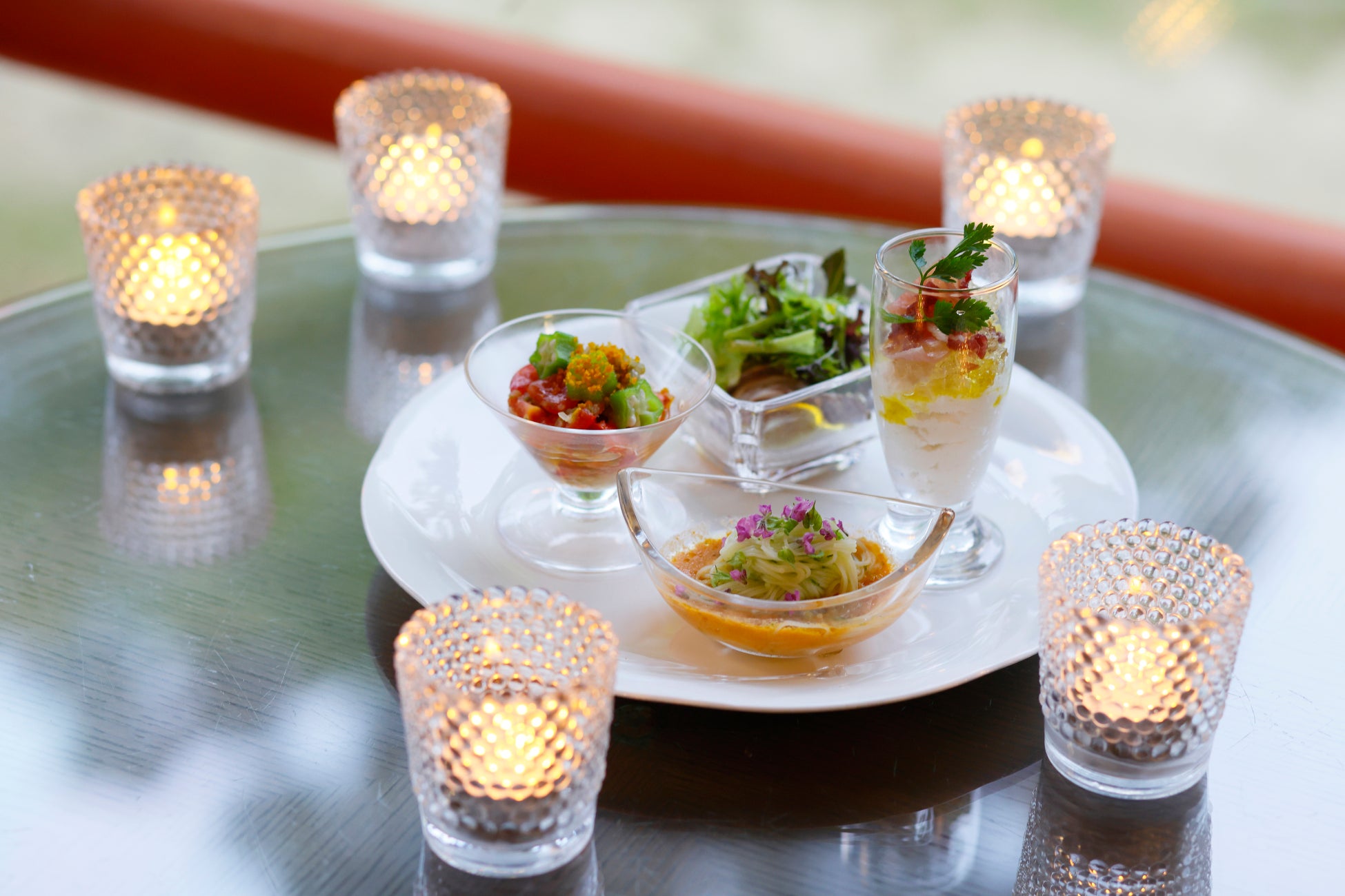 ・ガスパチョとそうめん きゅうりのヴィネグレットソース ・ローストビーフ、ポン酢ドレッシング