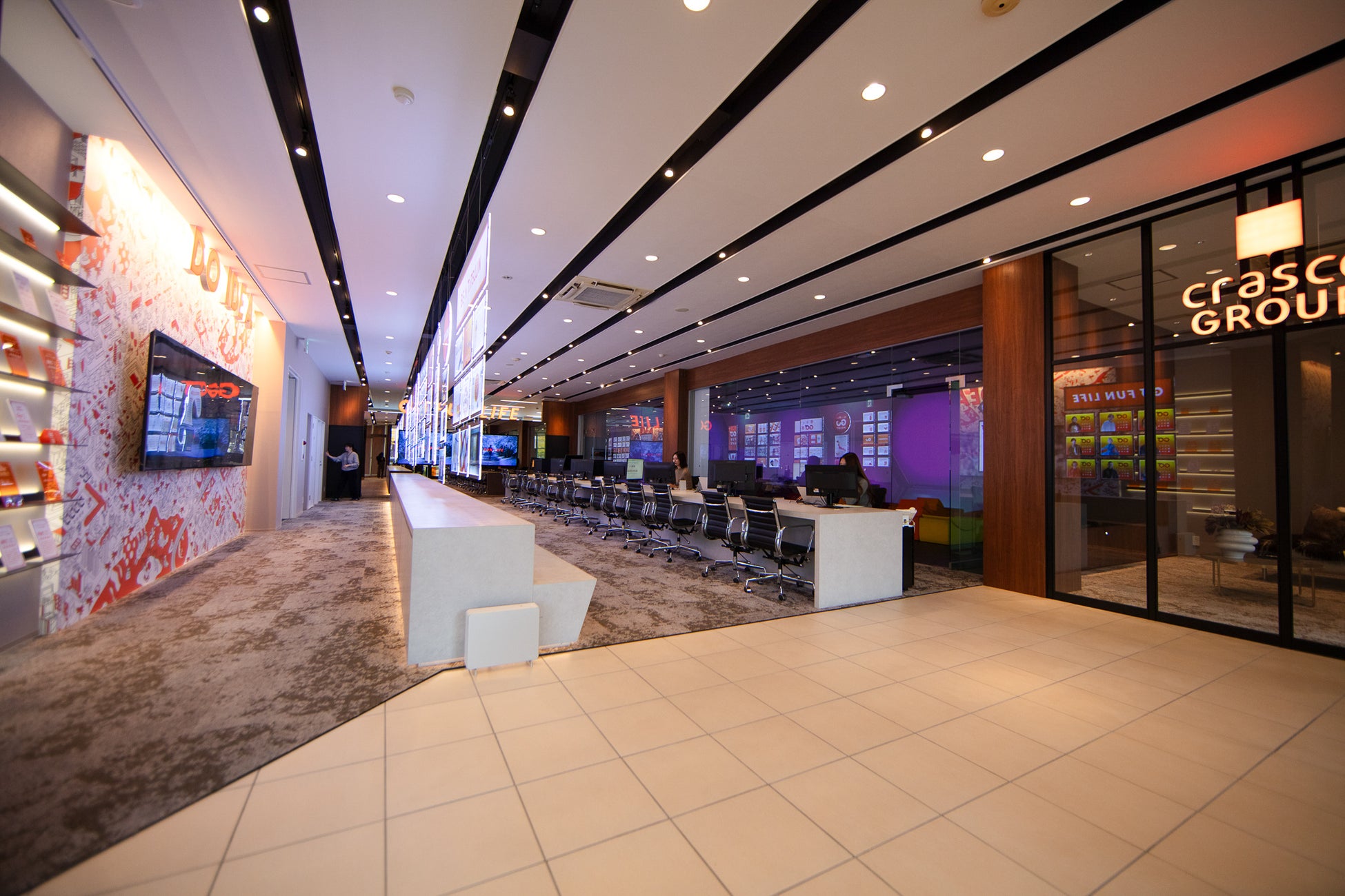 店内は、迫力ある大画面で「GO FUN LIFE」の世界観を視覚的に体感できる演出を施しています。