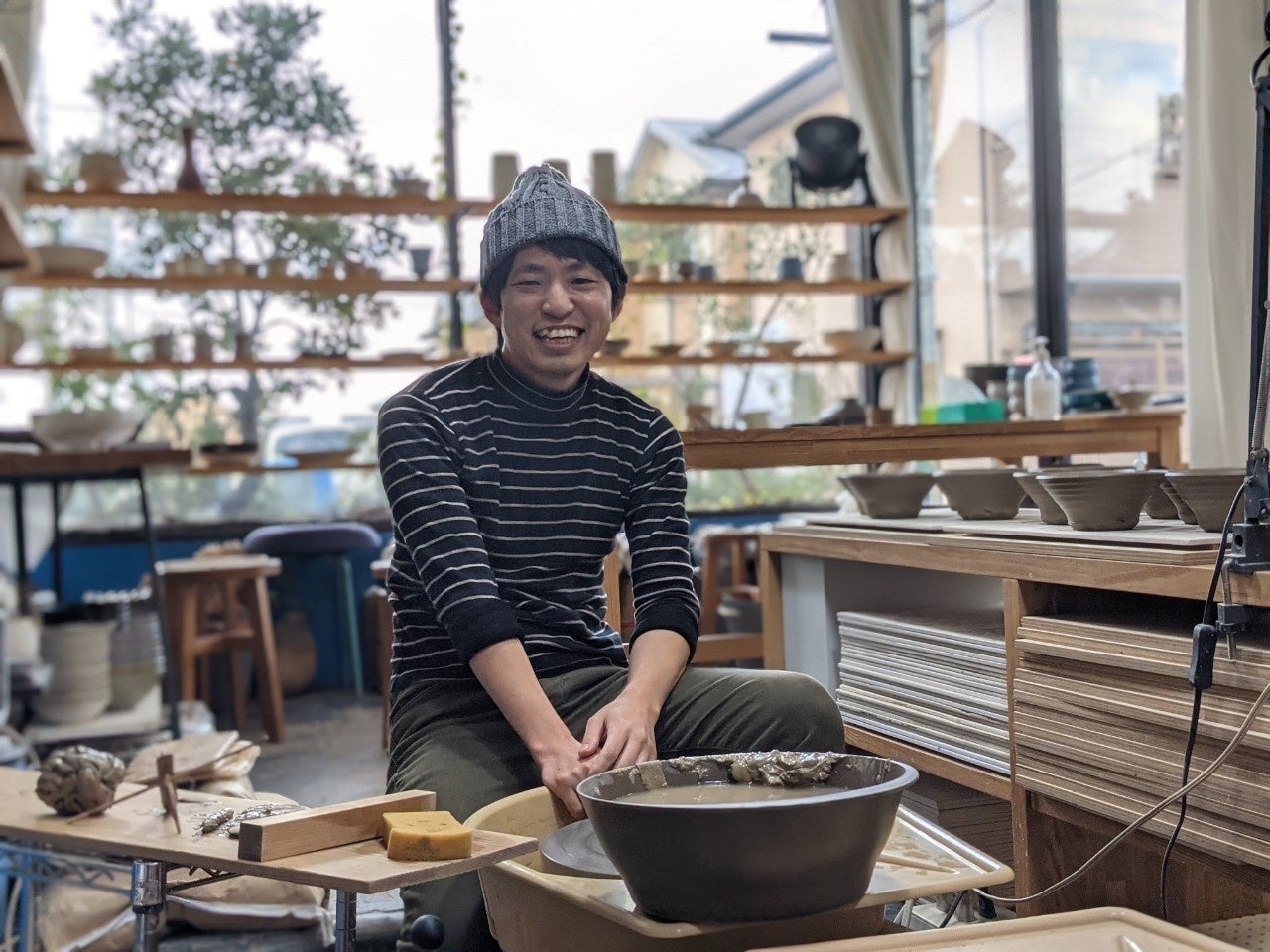 | 日常で使えるうつわを、柔軟に 食卓に馴染むシンプルなうつわは全国にファンが多く、工房で開催する陶芸教室も予約で埋まる人気。 “ うつわをつくるときに大事にしているのは、日常で使えるものをつくること。家庭で使ううつわは取り出しやすように立ち上がりをつくったり、子どもでも持ちやすいようカップに指筋や凹凸をつけたり。反対に、料理屋さんで使ううつわとなると実用性より料理を盛ったときの見た目の印象が大事。誰がどこで使うかによって求められるうつわは変わってくるので、作風に縛られずに柔軟につくるようにしています。” (奈良新聞 特集記事より抜粋) |