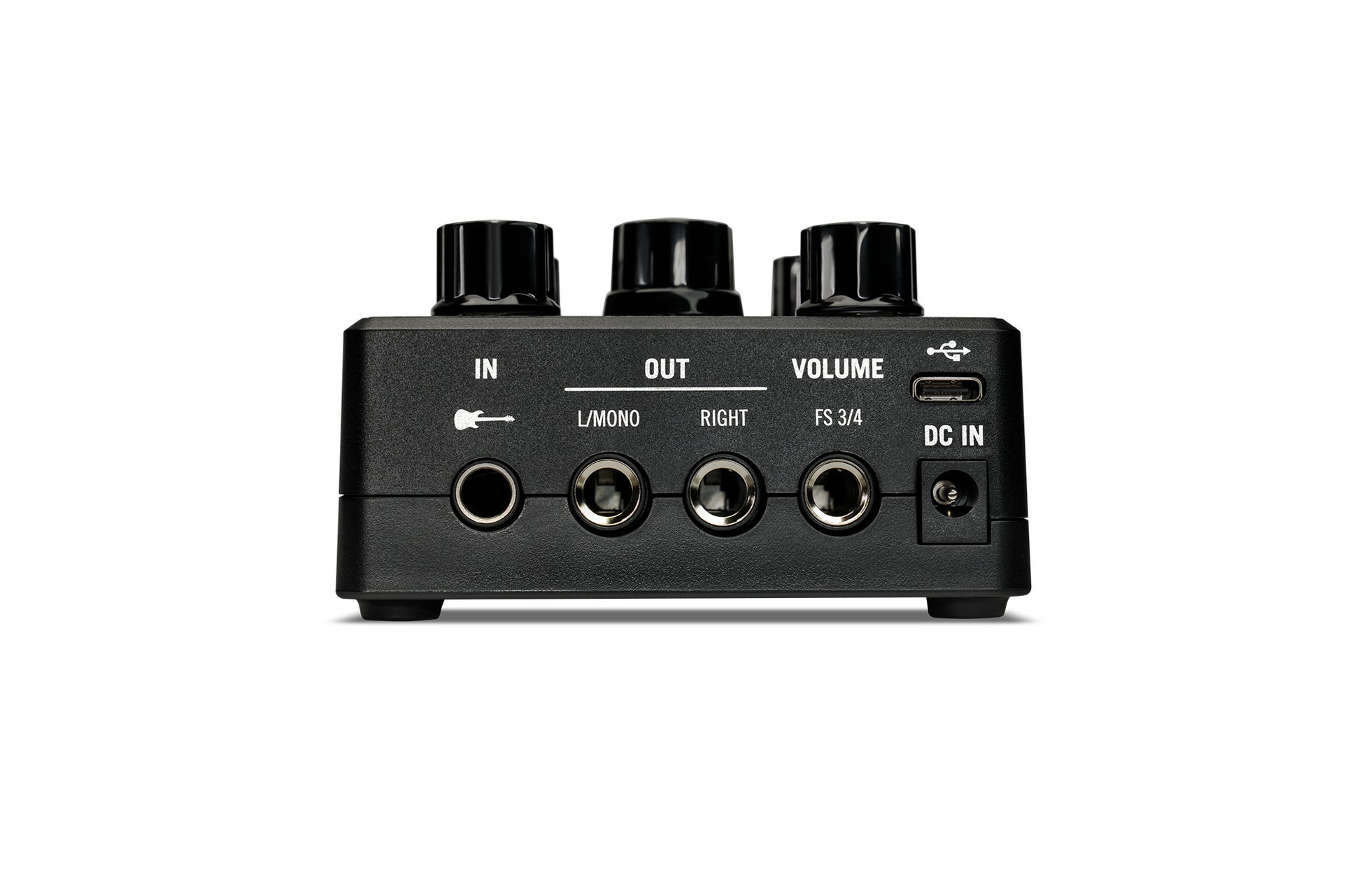 ユーザーインターフェースはシンプルな操作性を追求しており、中央のノブでアンプタイプを選択し、その周囲にあるエフェクト対応のノブを回すだけで、素早く簡単に音作りを行なえます。エディターソフト(無償)を使えば、パソコンやスマートデバイスで細かい音色を編集することも可能です。入出力端子には、ヘッドホン端子はもちろんのこと、録音用のオーディオ・インターフェースとしても使用できるようUSB Type-C端子なども装備。さらに3本の単三電池(付属)または9V電源アダプター(別売り)で動作するので、これ1台で気軽にギターの演奏を自宅で楽しむことができます。
