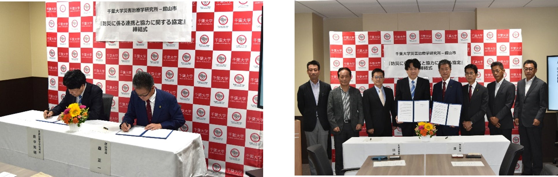 このたび、千葉大学災害治療学研究所と館山市は、発生が危惧されている南海トラフ巨大地震、首都直下地震等による大規模災害に備え、防災に係る分野において相互に人的資源等を活用し、連携と協力のもとに地域社会の発展、社会ニーズに対応した研究の深化、人材の育成に寄与することを目的として、令和6年8月30日に連携協定を締結しました。